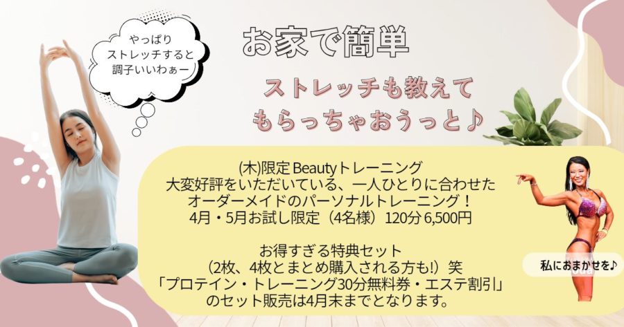💪 パーソナルトレーニングお試し4月5月は4名様限定(120分)