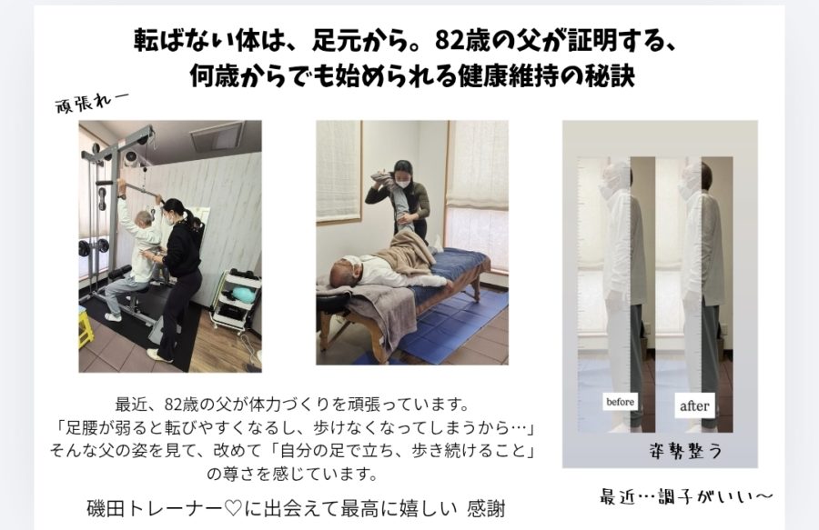 実は最近、82歳になる私の父が「自分の足で歩き続けたい」と一生懸命に体力づくりを頑張っています。その姿をみて応援したいと感じました!